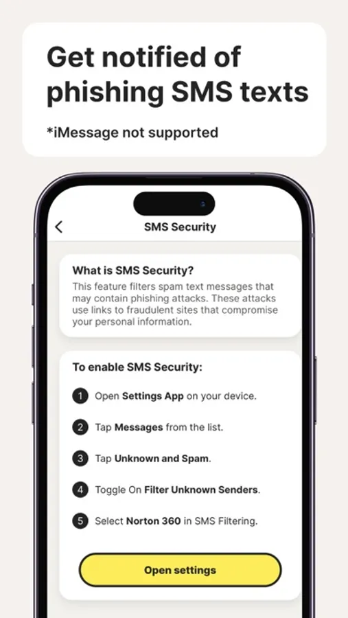– SMS Security: This feature filters spam SMS text messages that may contain phishing attacks. These attacks use links to fraudulent sites that compromise your personal information.