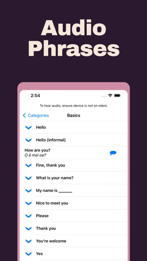 • Conversations: Access 400 phrases with audio pronunciations suited for everyday conversations