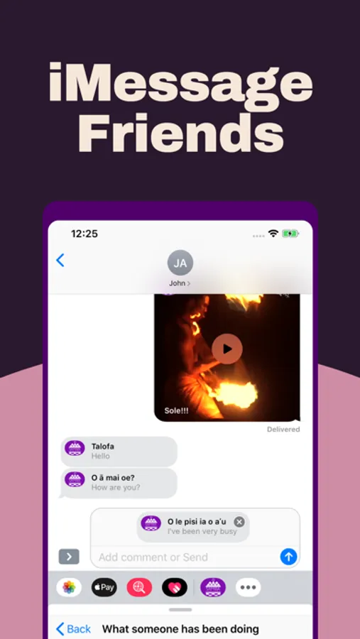 • iMessage App: Send iMessage friends English/Samoan text from two of our available list of phrases
