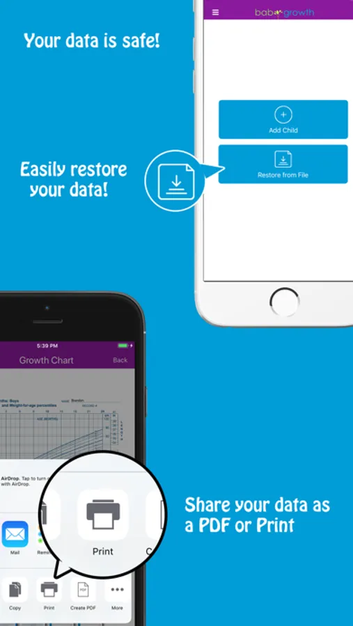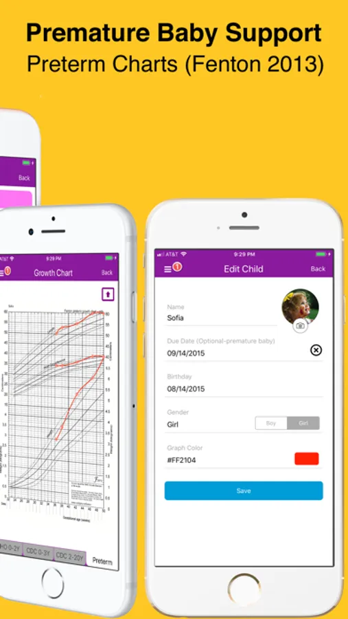 • Graph your child's data on the official WHO and CDC charts.