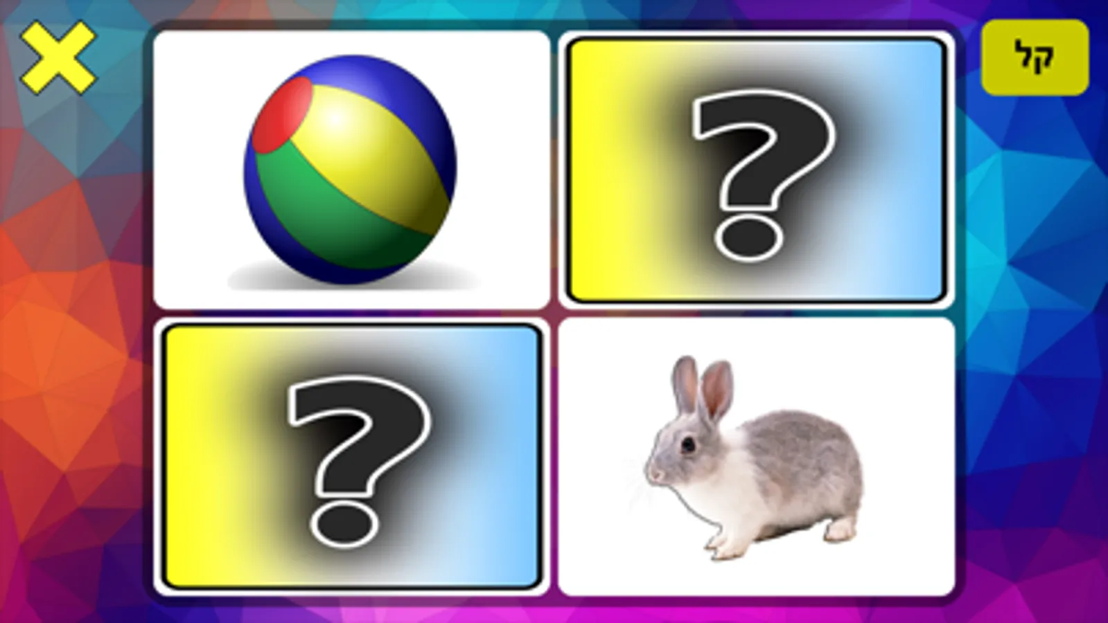 משחק קלפי זיכרון לימודי, בליוי צלילים ותמונות.
