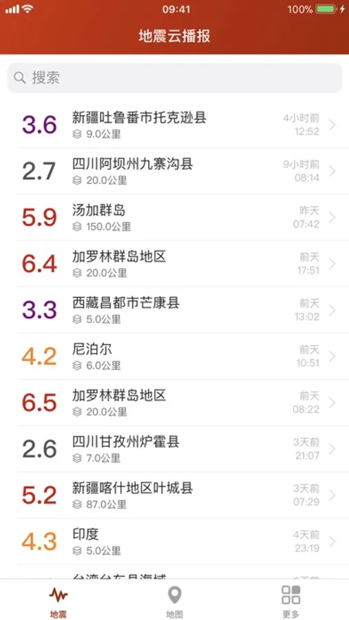 - 通过全球地图,概览受灾地区及震级分布情况。