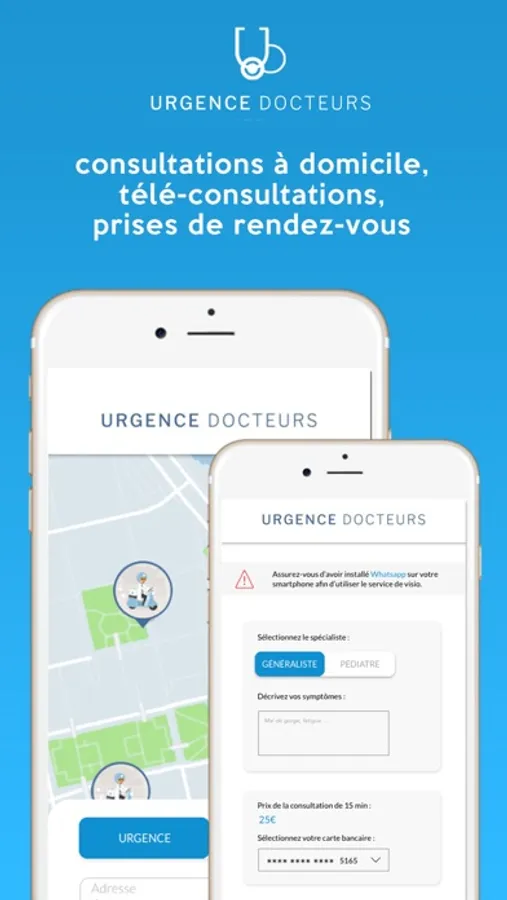 Urgence Docteurs est l’application mobile qui vous permet de demander un docteur à domicile immédiatement, de faire de la télé-consultation et de prendre des rendez-vous médicaux en cabinet médical parmi un large portail de médecins disponibles.