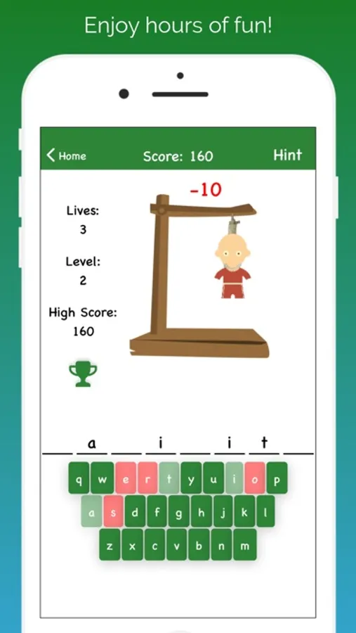 Hangman is a classic way to learn new words or remember how words are spelled. It is perfect for classrooms or to improve vocabulary! Hangout with friends in the 2 player mode or achieve a high score against thousands of others on the leaderboard.