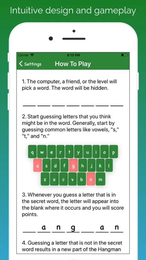 The computer, a friend, or the level will pick a word. The word will be hidden. Start guessing letters that you think might be in the word. Generally, start by guessing common letters like vowels, "s," "t," and "n".
