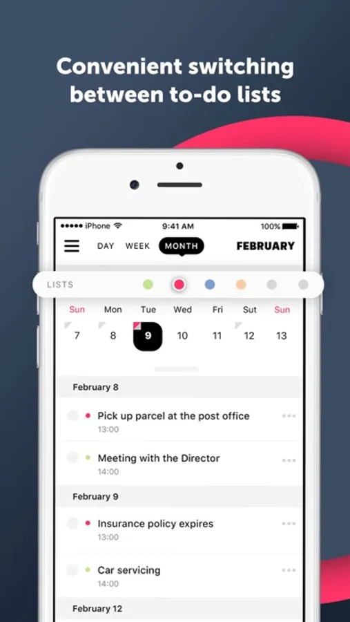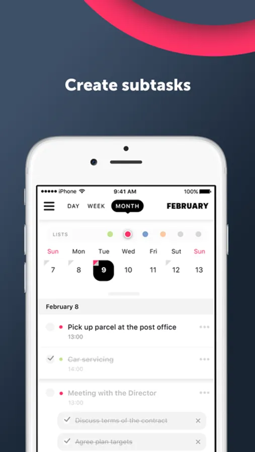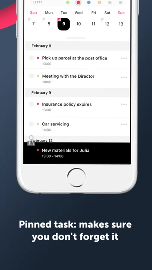 - pin one task to the main screen, so that it is visible, and you don't forget it;