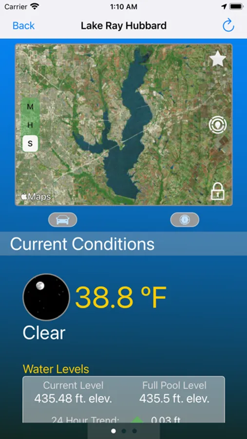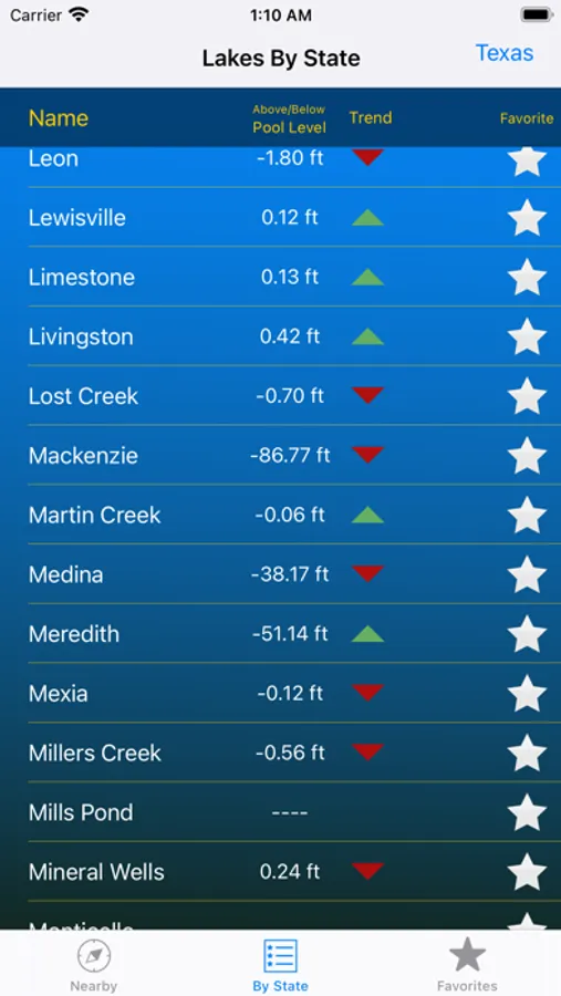 Easy to use lists allow you to view lakes by state or by your location proximity. You can also set favorite lakes for quick reference.