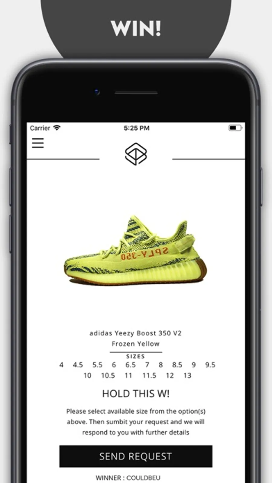 - If you won something, request a size and our team will ship the item out as soon as possible.