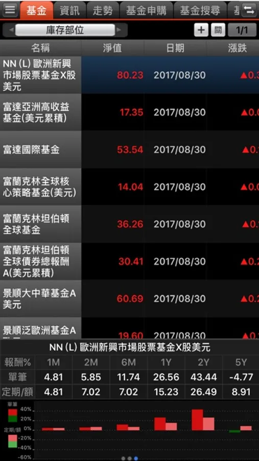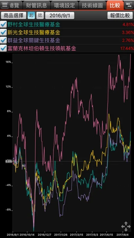 多檔基金績效比較功能及技術線圖,基金汰弱留強更輕鬆