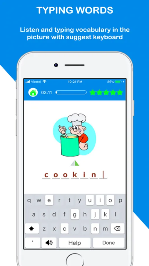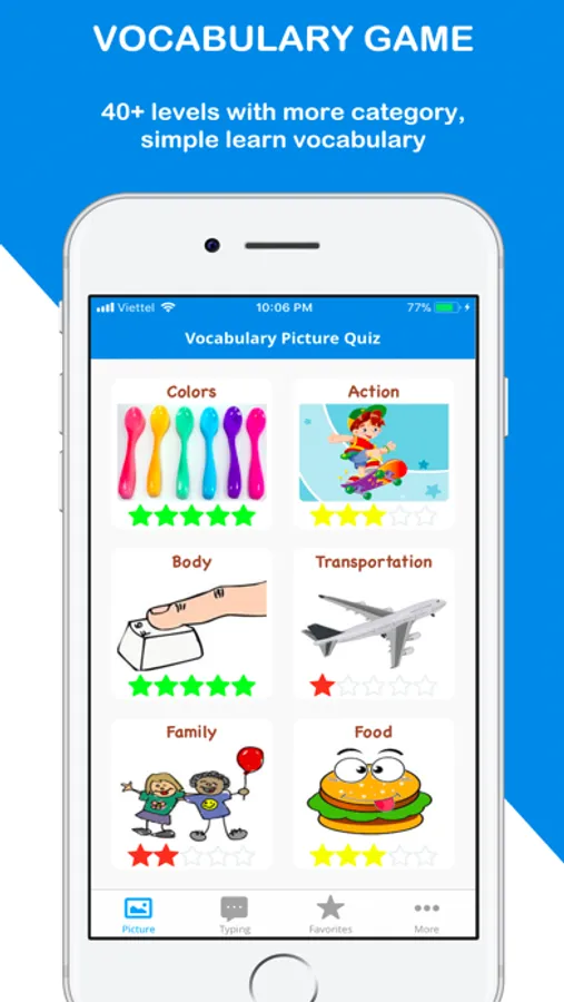 Learning, practice vocabulary by picture and typing for beginners, elementary and advance level