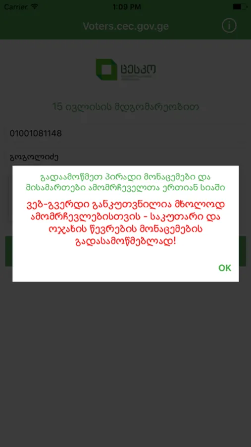 App gives you an ability to check yourself in voters list for Georgian elections. you can use your id and last name to find your information. you can also see your polling station on the map.