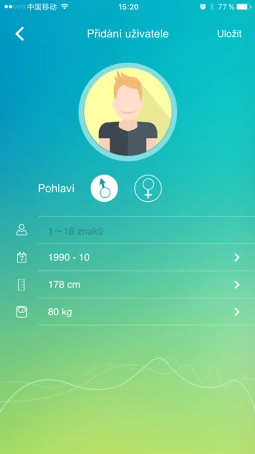 - Umožňuje přepnutí jednotek hmotnosti (kg/lb/st) a výšky (cm)