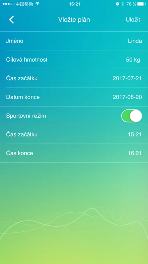 - Možnost stanovení a sledování cíle jednoho uživatele (požadované hmotnosti) za libovolné časové období