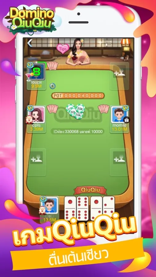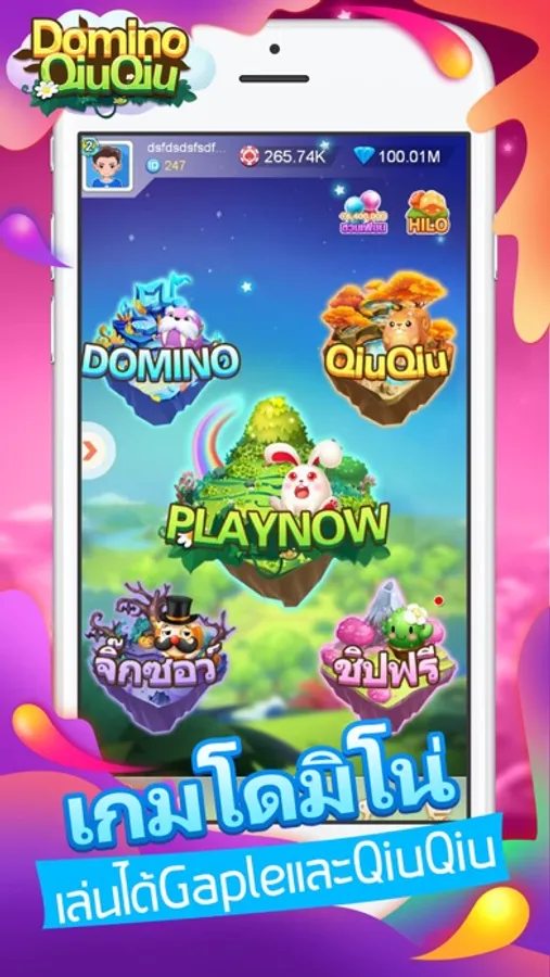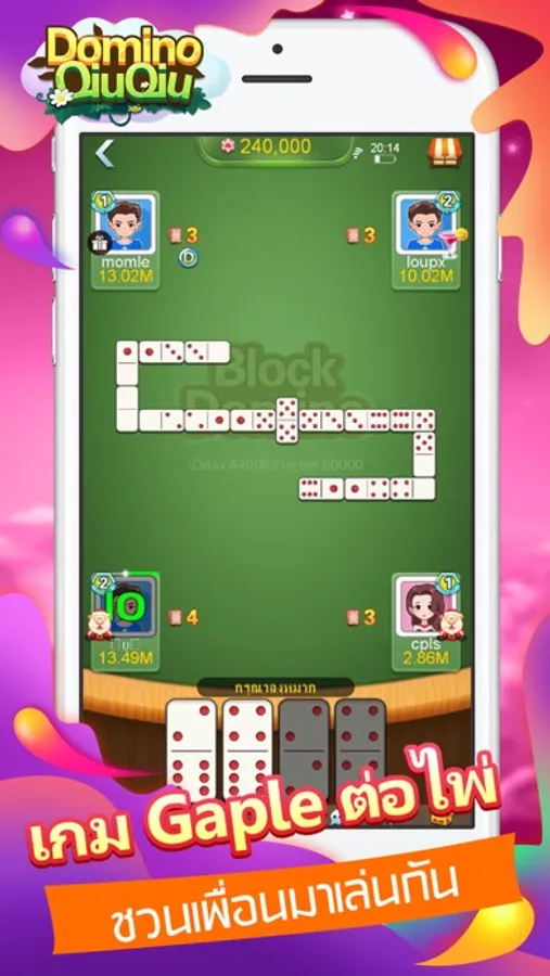 โดมิโน่ หรือที่ฝรั่งเรียก Dominoes และ dominos หรือ Gaple นั้นเป็นหนึ่งในเกมกระดานยอดนิยมมาช้านานของทั้งคนไทยและคนทั่วโลก เป็นเกมสำหรับ 2 - 4 คน โดมิโน่มีจุดบอกแต้มจำนวนต่าง จริงๆแล้ว คุณใช้โดมิโน่เล่นได้หลายเกมเลย ในแอพเรา สามารถเล่นวิธีแบบจั่วไพ่(Draw Domino) และไม่จั่วไพ่(Block Domino)ได้ นอกจากนิ้แล้ว คุณยังสามารถเล่นแบบการแข่ง 2 ต่อ 2 และมินิเกมไฮโล hilo ได้