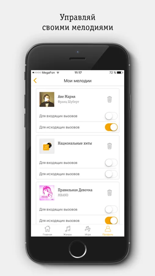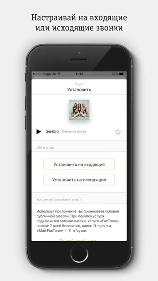 При заказе мелодий из приложения услуга Funtone / Мой Funtone подключается автоматически (если она не была подключена ранее). После установки мелодии гудки в вашем телефоне меняются на новую мелодию, которую будут слышать все звонящие Вам абоненты.