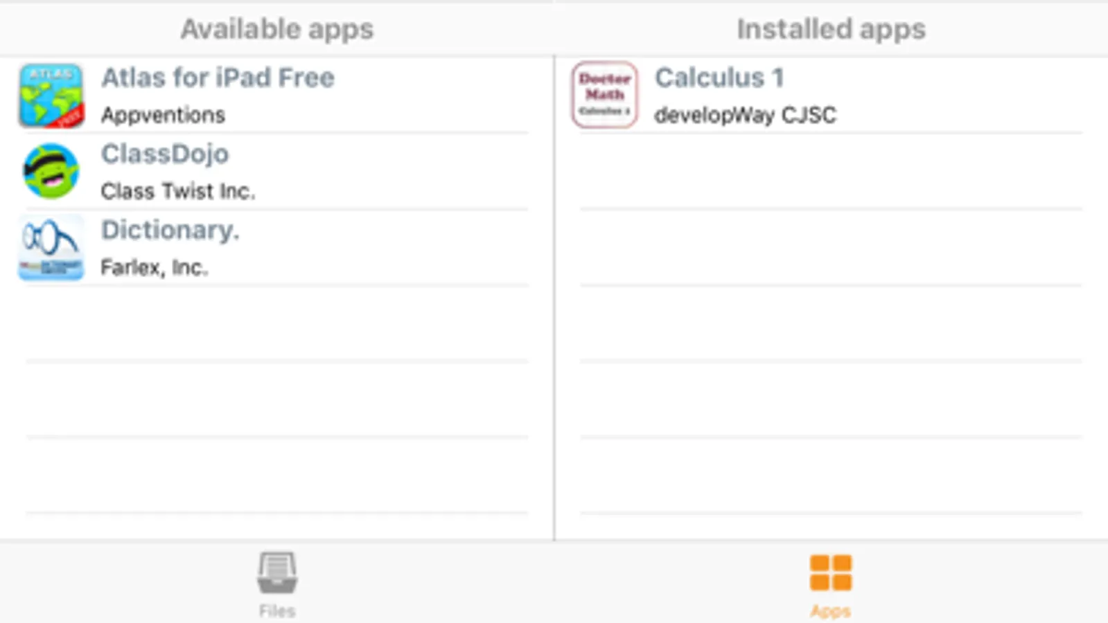 Files: Displays a list of files pushed to the device by admins and teachers from the MDM. A built-in reader is included for common file formats. Files can be pushed to other apps on the device that can handle the file type.