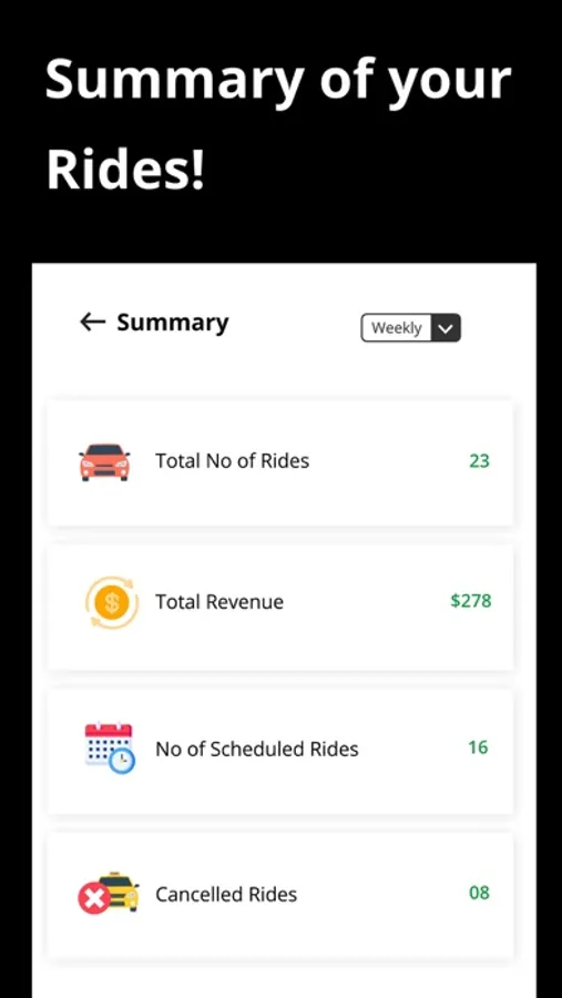 It allows the taxi drivers to become visible to the customers easily via GPS facility. The driver can keep track ongoing trip. He can manage the profile information. The details of the trip such as pick up and drop location, time, round trip option etc., are received from the passenger. The approximate fare is calculated based on kilometers and sent to the passenger. The payments can be received via card or cash. The driver app allows to view the statistical information such as jobs done, jobs rejected, driven kilometers etc.