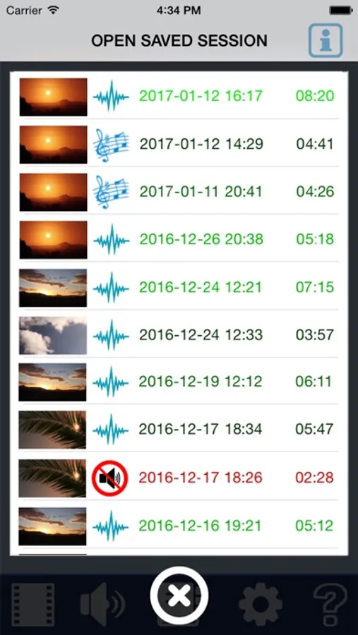 There is a number of video (using in one of the two modes) and audio items available in the App. The App allows add videos (specifying name and one of the two modes of use) and audio tracks from user’s Media Library to use them, along with embedded ones. Also there are opportunities to manage the database of saved biofeedback sessions and graphically represent their results.