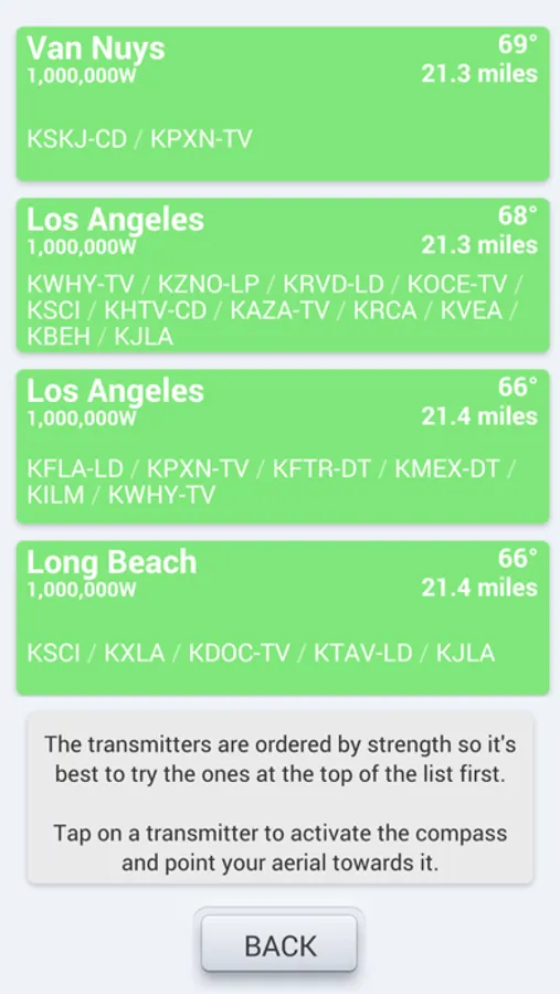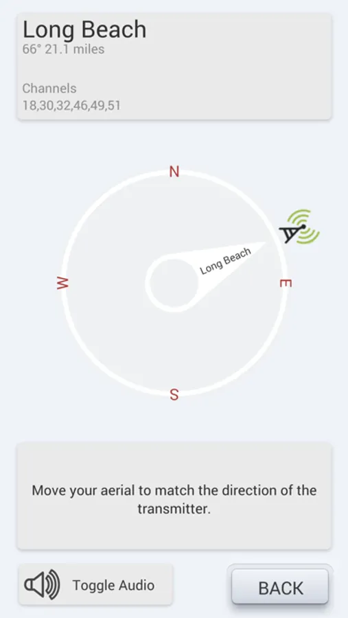 Use your current GPS location or enter your address / zipcode and with a single tap the app will show you how to point your aerial to the best signal.