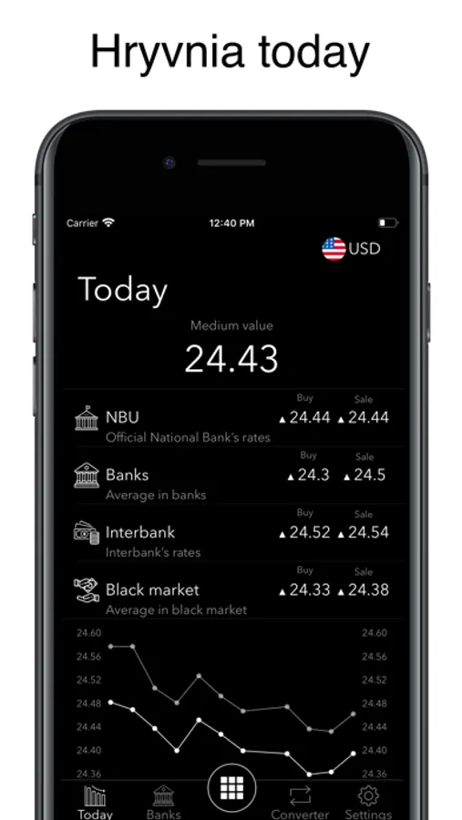 Hryvnia is a convenient informative application about the exchange rate changes in the NBU, Interbank, in the banks of Ukraine and on the Black market. The application allows you to monitor fluctuations in exchange rates for a day or a week for all or selected banks, and there is also a function to determine the average value of the exchange rate of the selected currency. The application includes a convenient and simple currency converter and provides an opportunity to monitor the latest relevant news of the financial sector of Ukraine.