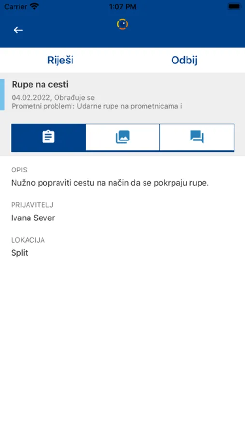 Omogućava se jednostavna prijava uočenih nedostataka na terenu te se omogućava svim sudionicima da bez dodatnih napora i tehničkih znanja kreiraju sustavnu evidenciju, s ciljem prosljeđivanja na osobe zadužene za pojedinu problematiku.