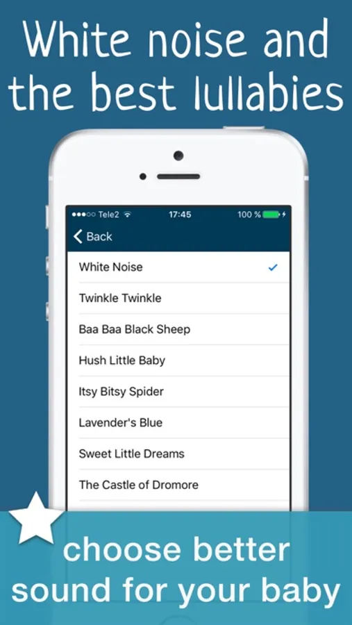 Help your baby relax and drift gently off to sleep with lullabies and white noise. It works offline (in airplane mode) and the sound plays in the background when the device is locked. You can choose the time limit 1-60 min.