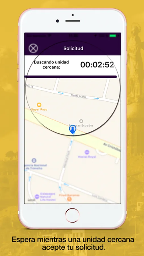 1. Luego de crear tu cuenta, ubica el puntero GPS en la zona donde deseas solicitar taxi.