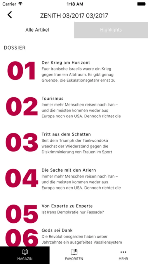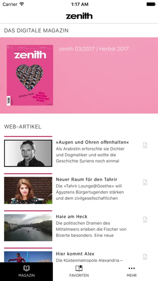 The zenith-app offers reporting, analysis and interviews from the Middle East and North Africa. You can access our content optimized for your smartphone, also you enjoy additional options, for example you can download long reads – a perfect treat for a long journey.