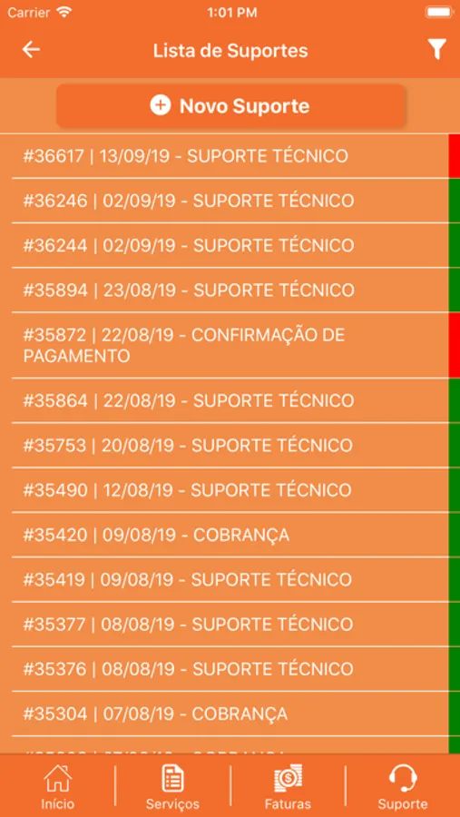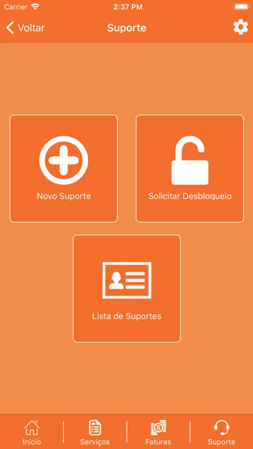 - Opção para acompanhar seus suportes ou iniciar um novo atendimento;