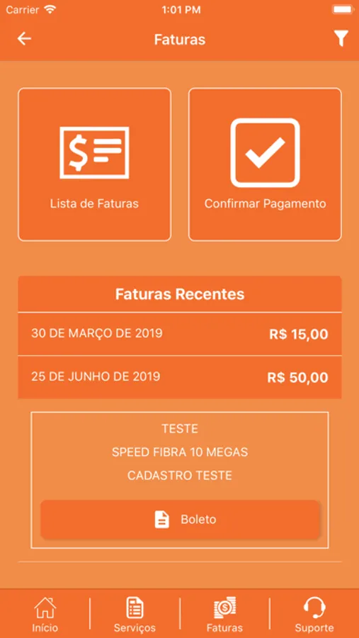- Obter segunda via de fatura;