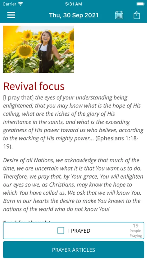 2. Daily prayer commitment option with 'I PRAYED' as well as viewing the number of others also praying.