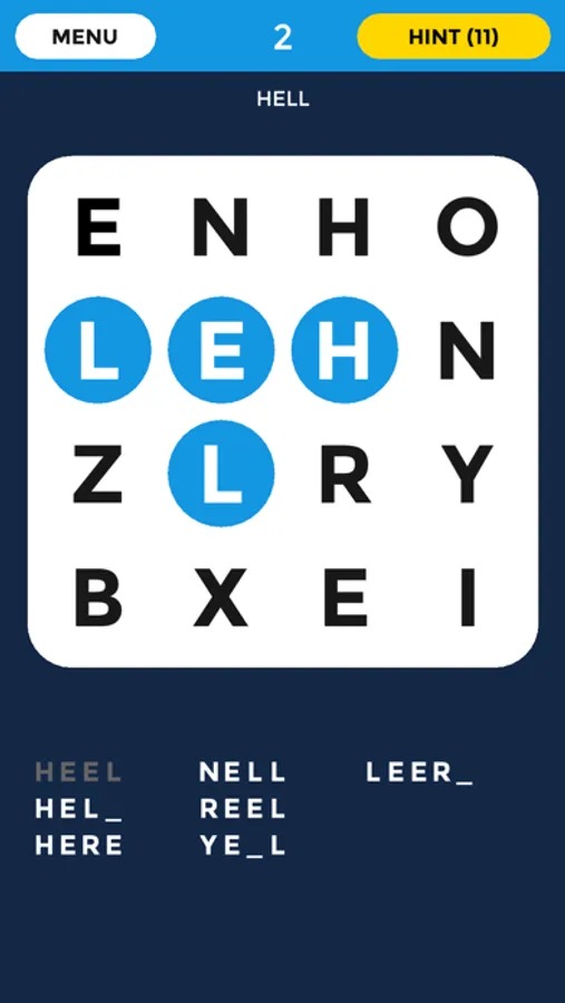 The game starts easy but gets progressively harder as more and more blanks are presented in the words to find - you must figure out the missing letters and match the words on the grid.