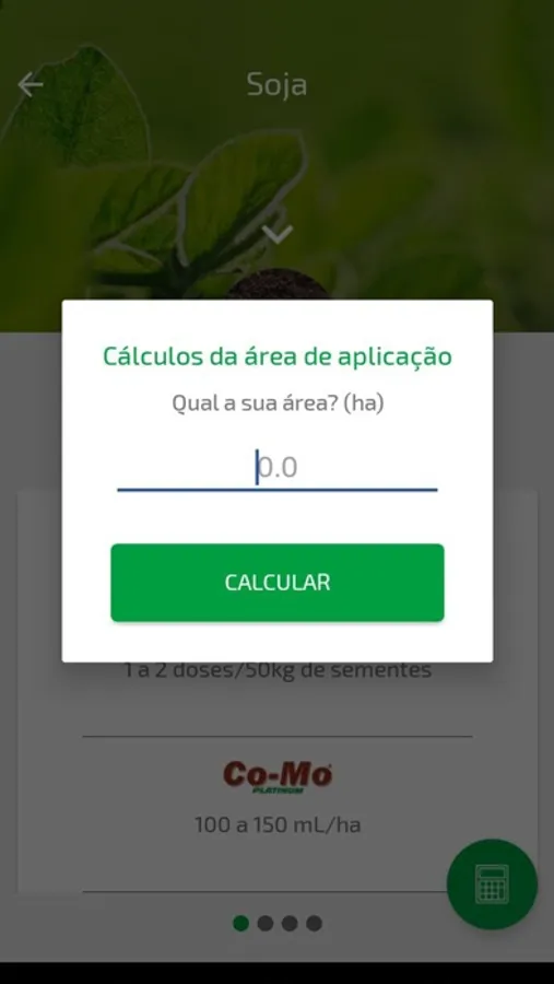 Além de todo o conteúdo técnico, o aplicativo também possui uma eficiente calculadora de aplicação, onde o usuário preenche a área de sua propriedade e recebe recomendações customizadas para a utilização das Soluções Stoller.