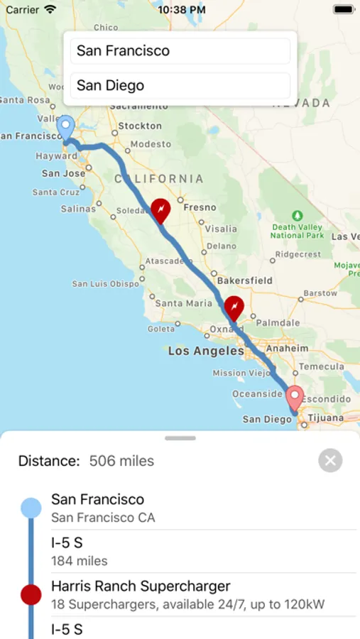 Replug is a route planner for Tesla vehicles using the Tesla Supercharger network, similar to what's inside Tesla vehicles. Enter a start and destination and Replug will calculate an optimal route with any necessary charging stops along the way. You can configure options such as your vehicle model, consumption, and state of charge at various points along the trip.