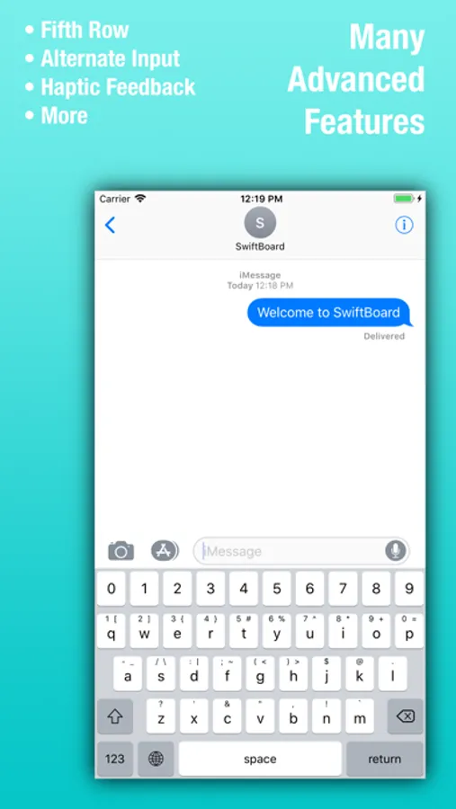 SwiftBoard is an iOS keyboard extension built from the ground up to provide speed, stability and customization. SwitBoard provides every setting and customization option you would expect from a keyboard and much more.