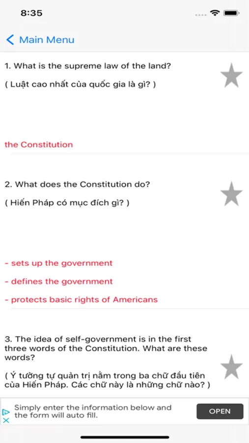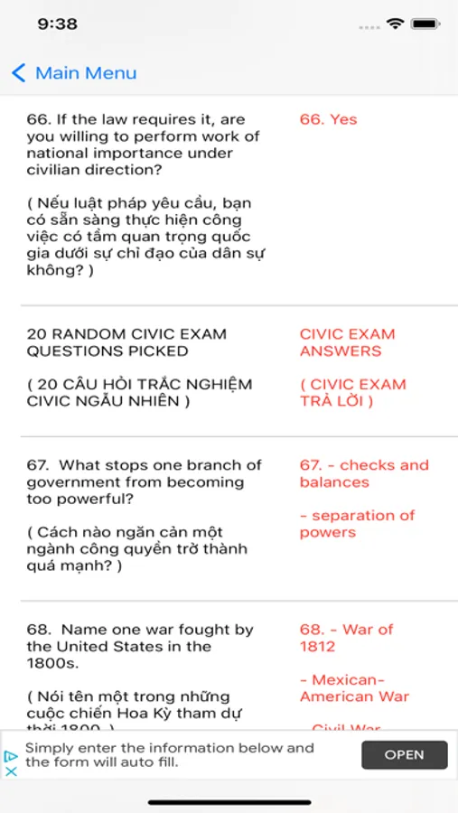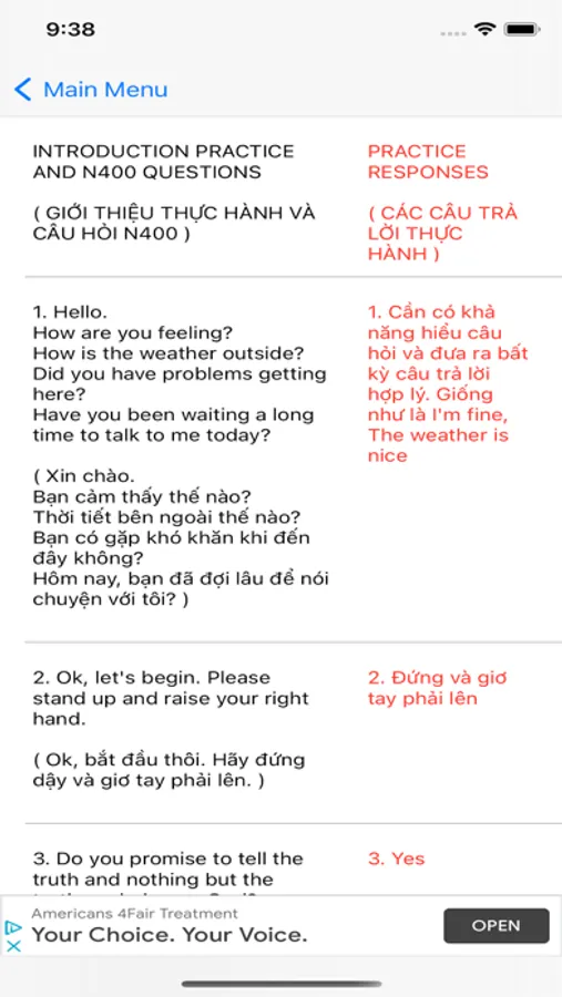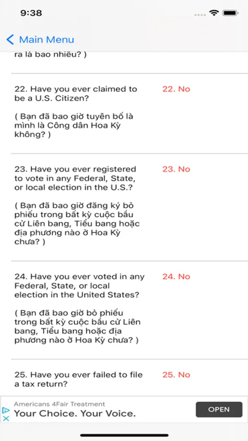 - Translated Vietnamese questions and answers for older people that are eligible to take Vietnamese version of the exam.