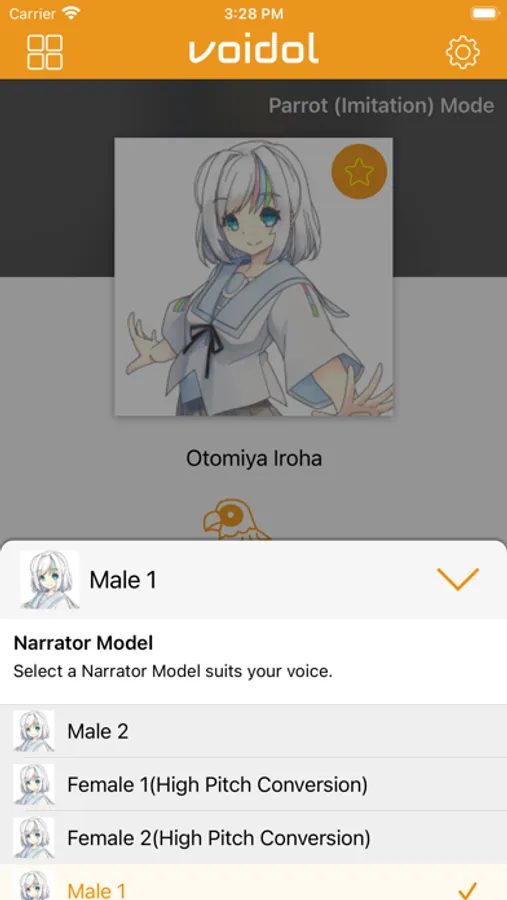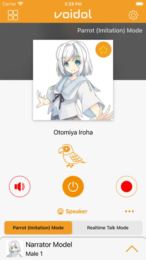 Parrot (Imitation) Mode: To speak into the iPhone, and the converted voice will be played after soon.
