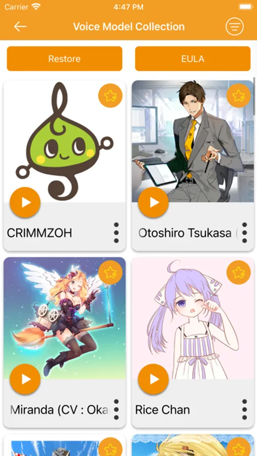 In the application, seven characters have been installed as the preset voice models.