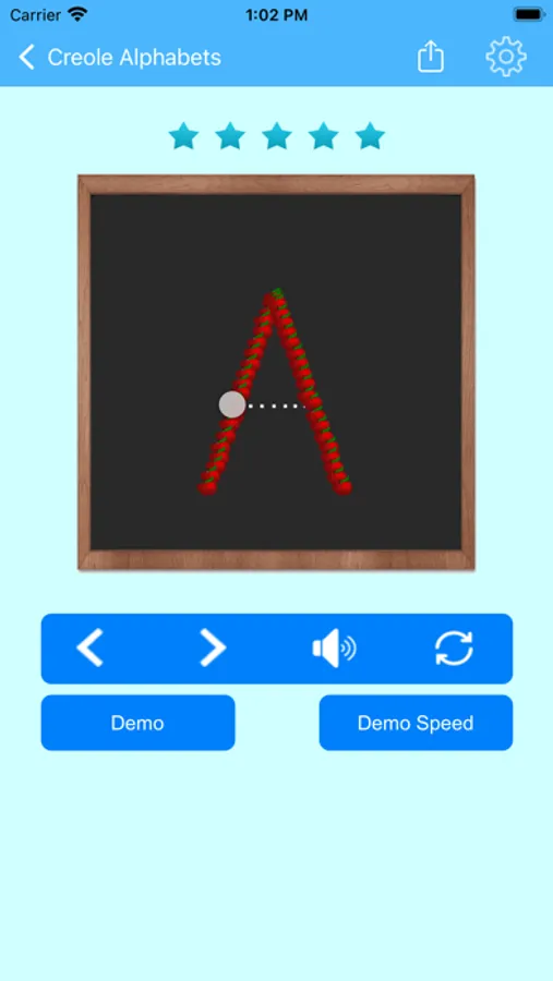 This Creole learning app allow users to lean each Creole letter writing and practicing in solo mode or play with friends mode. The traced Creole letters and word images can be saved and shared in social medias like Facebook, Twitter, and email to others. The tracing fond color and background can be personalized.