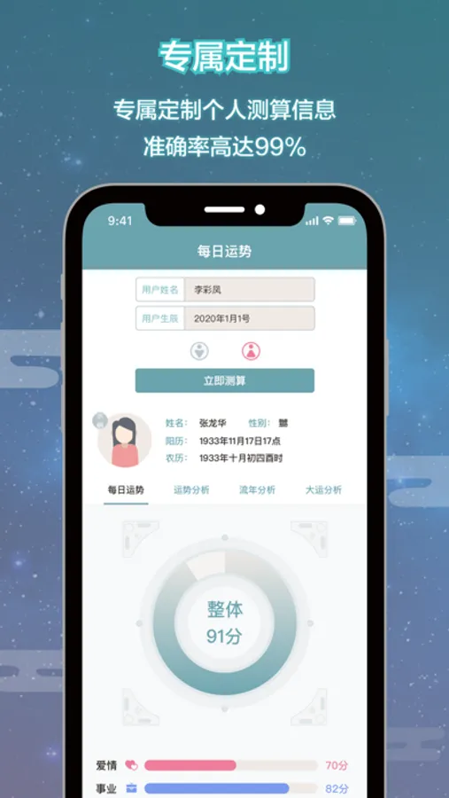 每日运势——可以查看每日的运势和运势分析结果,让您随手掌握每天的运势走势;