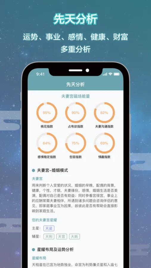 先天分析——从您的紫微排盘中查看您的运势报告、事业报告、感情报告、健康报告和财富报告等详细分析报告。