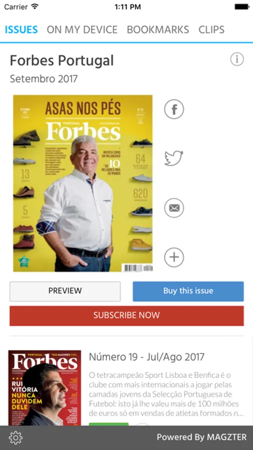 A Forbes Portugal é uma revista mensal focada no mundo dos negócios e da economia. Mas é mais do que uma publicação que se limita a contar boas histórias sobre empresas e números. A Forbes Portugal quer surpreender, inspirar, dar ideias aos leitores. Ideias que possam ser usadas no dia-a-dia, levá-los a derrubar barreiras e a vencer. Como é que isso se consegue? Colocando no centro de todas as histórias empreendedores destemidos, líderes de sucesso, referências de hoje, mas também as promessas de amanhã