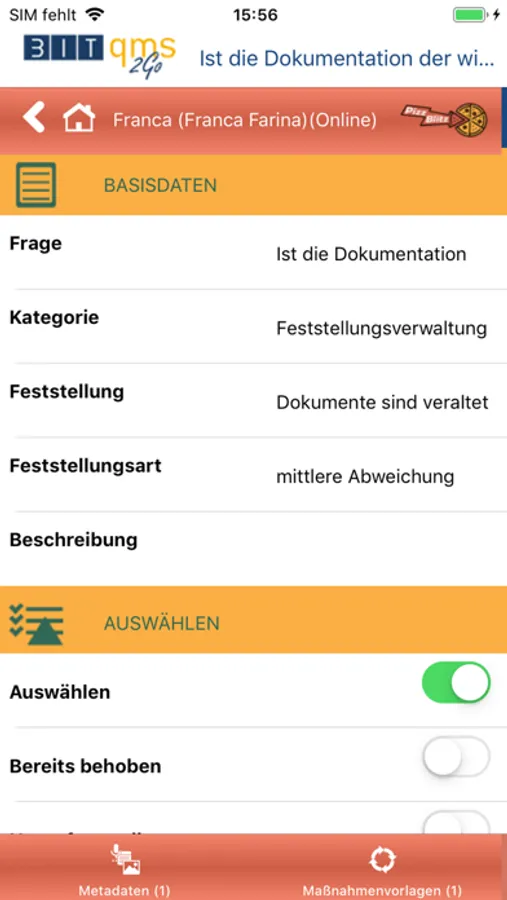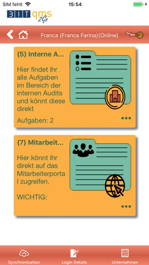Mit BITqms2Go wird die Arbeit direkt vor Ort ermöglicht - egal ob in der Produktionshalle, auf dem Werksgelände oder im abgelegensten Korridor der Klinik. Der Offline-Client BITqms2Go ermöglicht die ortsunabhängige Durchführung von Audits, Begehungen, Wartungsaufgaben und Prüfungen sowie den Zugriff auf Formulare, Richtlinien und Arbeitsanweisungen. Die erfassten Daten werden im Anschluss, sobald wieder eine Internetverbindung besteht, synchronisiert.