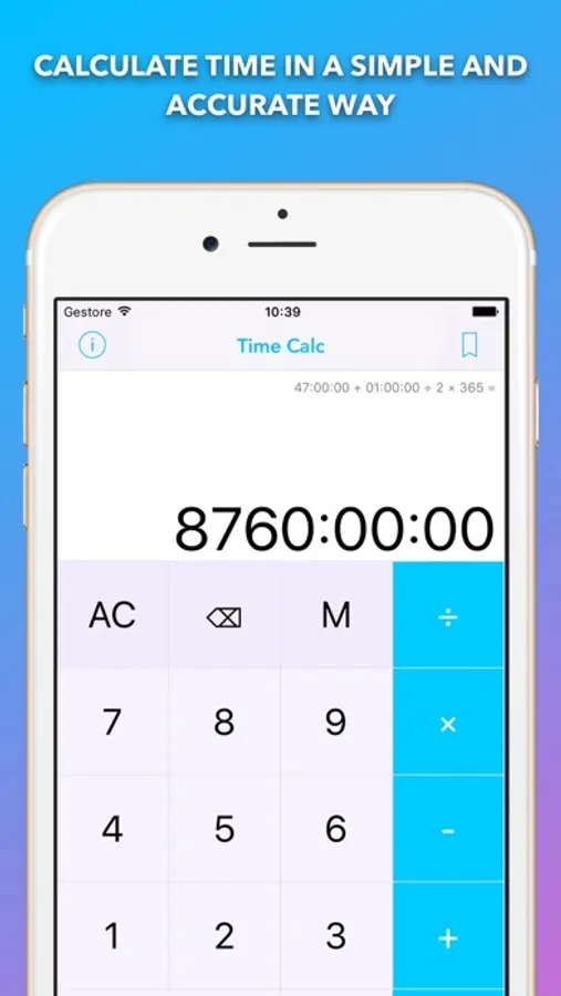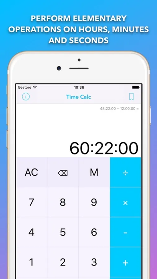 Time Calc: a beautiful simple and accurate time calculator that allows you to perform elementary operations on units of time like hours, minutes and seconds.