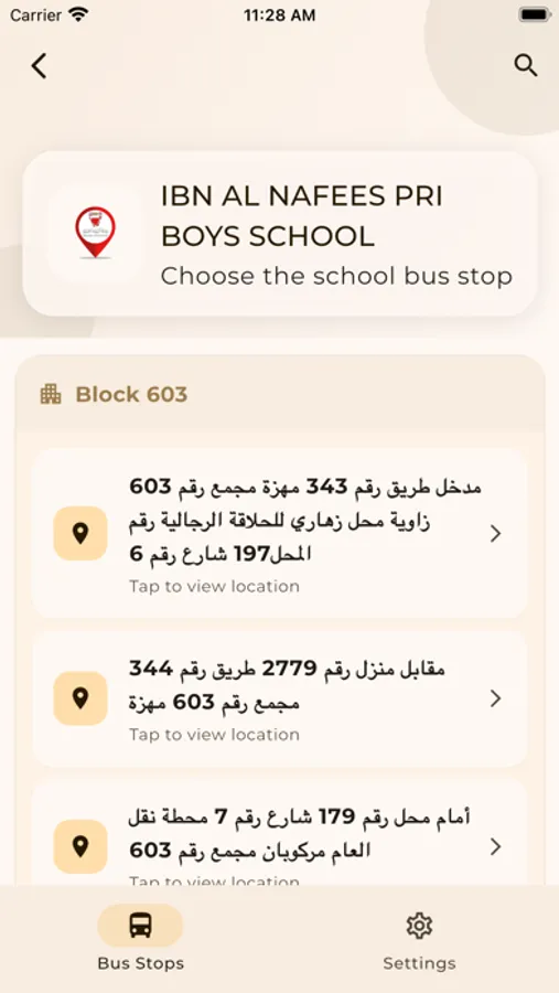 - Educational bus stops by school and block