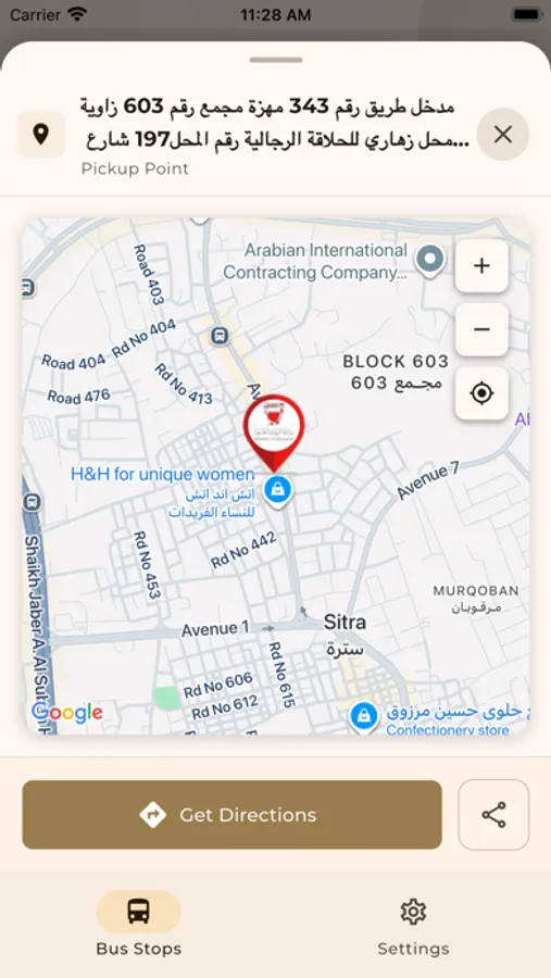 - Get directions to a specific bus stop