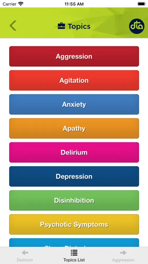 - Information on delirium and dementia