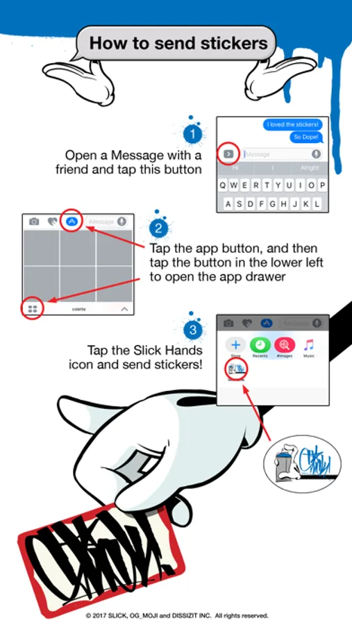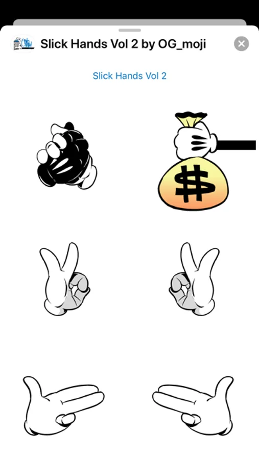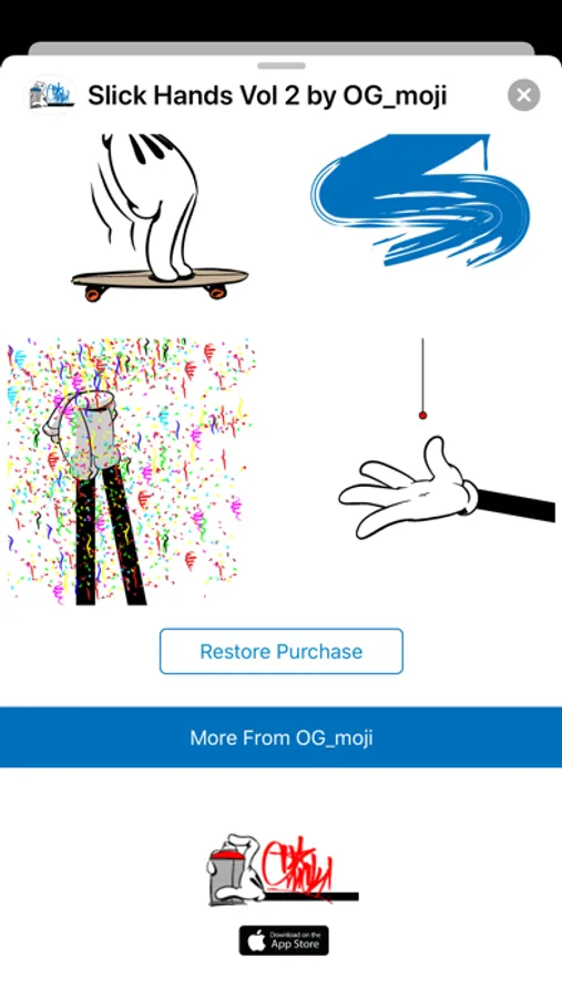 SLICKify yourself! Enhance your iMessages with SLICK HANDS Vol 2 by OG_moji! Legendary graff artist SLICK brings that street flav to the small screen.