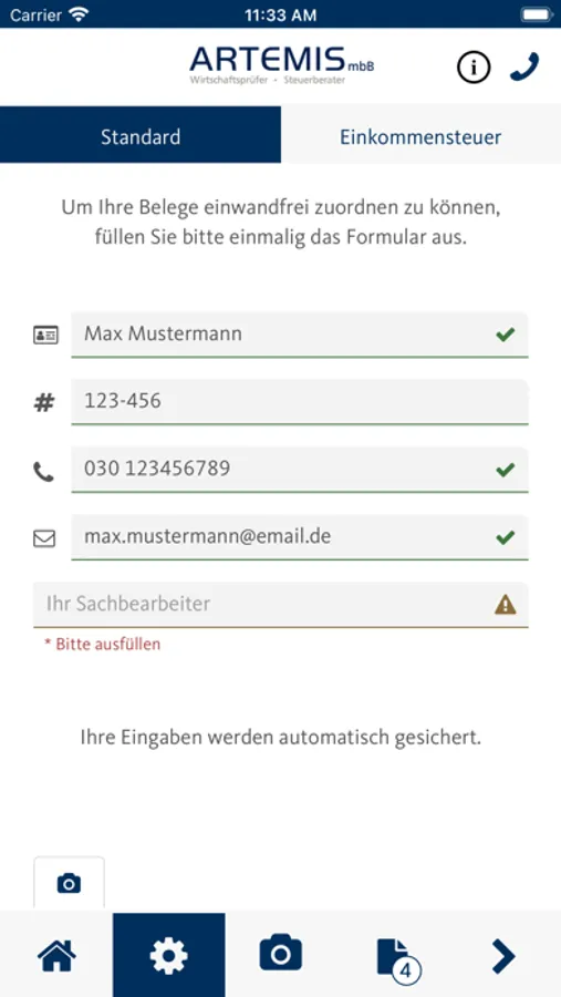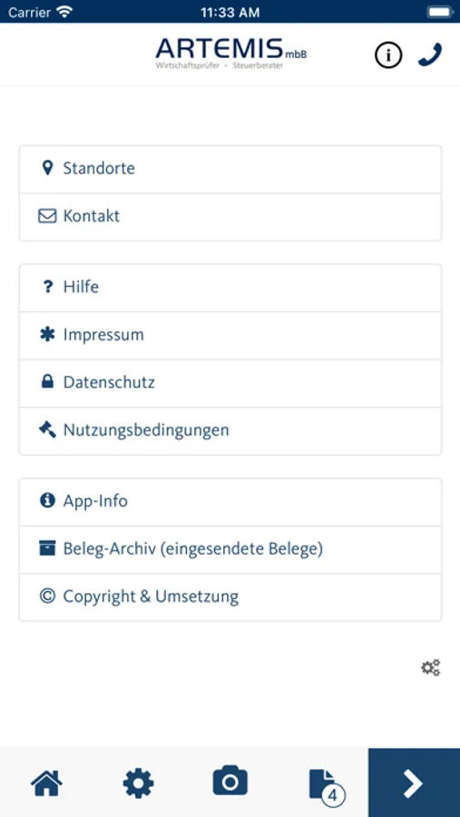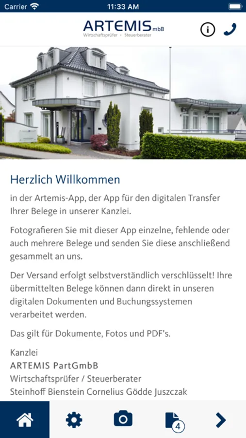 Mithilfe dieser App können Sie Belege, Dokumente und andere Schriftstücke schnell, sicher und komfortabel an Artemis gesendet werden.