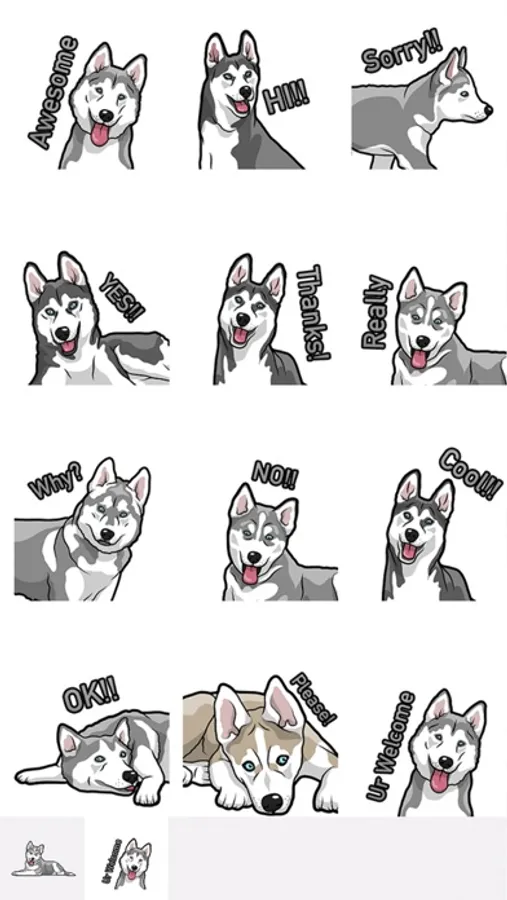 Just Click on the Husky emoji you want to use and share it directly to any social media you want or copy it and past any place you want.